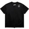 Black short sleeve t-shirt made of high quality cotton. It has an original print on the front of the garment and a label with the and wander logo embroidered on the bottom.