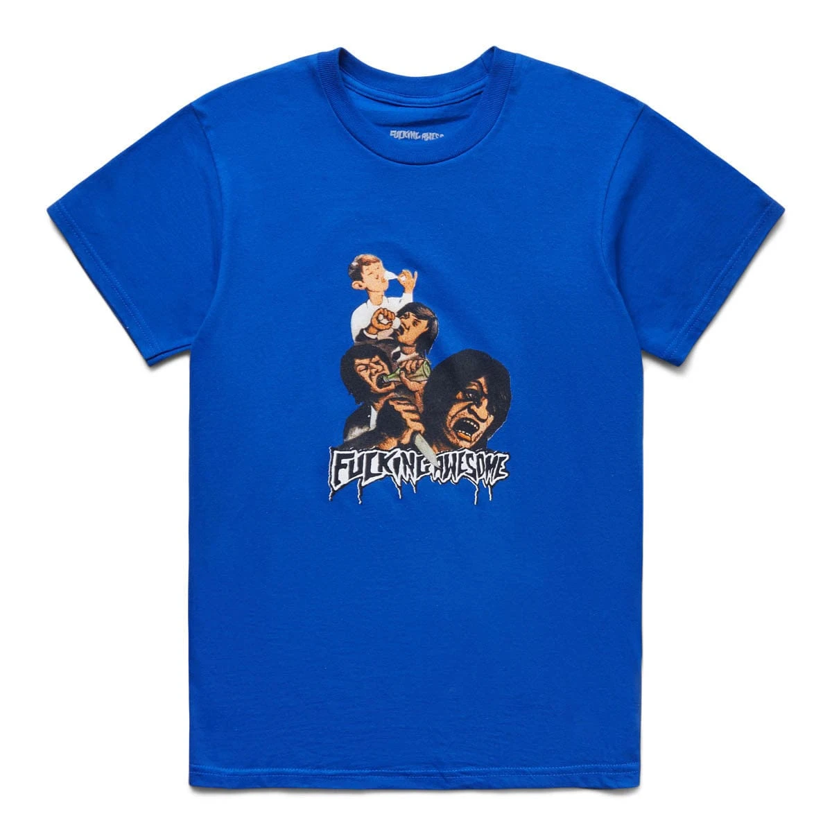 Employing graphics as edgy and unapologetically audacious as their chosen nomenclature — which, due to the expletive involved, is often shortened to FA — Fucking Awesome is not only a skate company but a noted fashion brand. Run by former Alien Workshop skater Jason Dill, alongside friend/director Mike Piscitelli and former Skater Of The Year, Anthony Van Engelen (aka AVE), FA has, in time, gone from a low-output, bedroom screen-press project to a full-fledged operation.