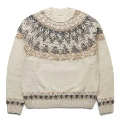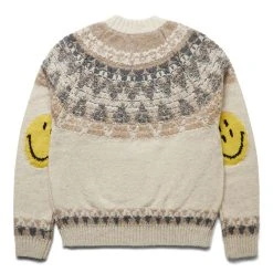 With the reputation as one of the most sought after names in the world of denim and alternate reality Americana, Kapital launched in 1996 and marries impeccable craftsmanship and innovative textile techniques with an intricately detailed, elegantly offbeat signature look, creating some of the most unique, authentic examples of ‘future vintage’ – garments and accessories coveted now that will only become more desirable as time goes on. Cozy up this winter with the 5G wool nordic smile patch raglan sweater.