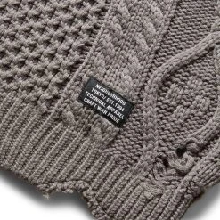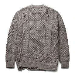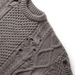 Neighborhood’s ‘Savage’ sweater is aptly named – its classic cable knit pattern is artfully interrupted by ripped holes and a distressed hem.Â