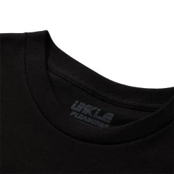 From the mind of designer Alex James, Pleasures is a contemporary expression of the eternally influential and relevant 80s and 90s subcultural aesthetics. James has lived and loved the sources of Pleasures’ inspirations, which sets it apart from the reference mining pack. Black t-shirt made for all day comfort, with design from collab with UNKLE.